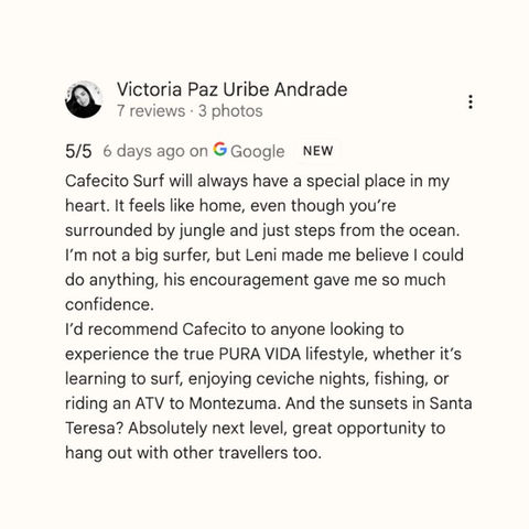 Cafecito Surf is more than a guesthouse — it’s the home Lenin grew up in. Built by his parents after moving from Nicaragua, it’s now a surf house filled with 25 years of family, friendship, and good vibes, rooted in perseverance, connection, and the joy of sharing Santa Teresa.